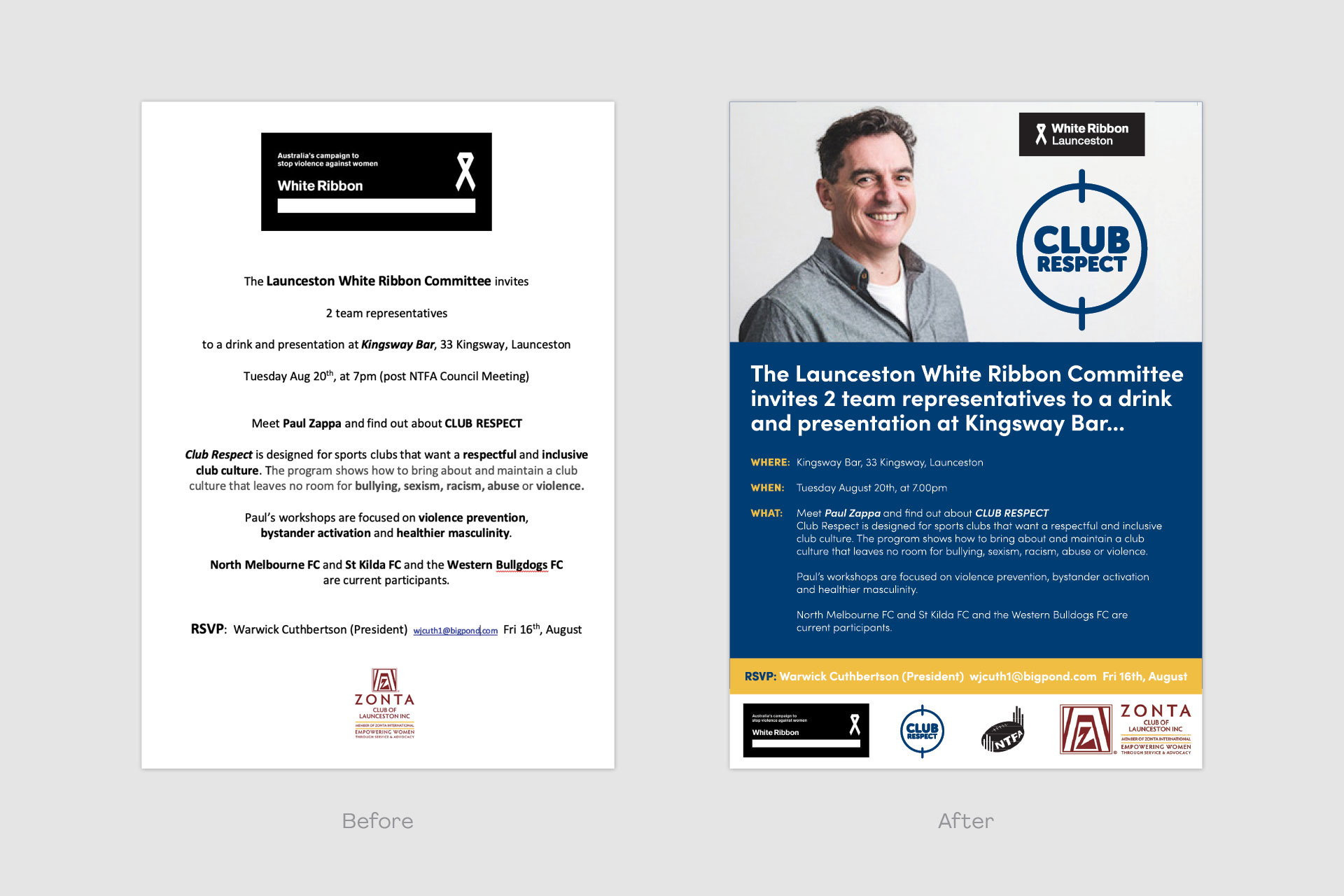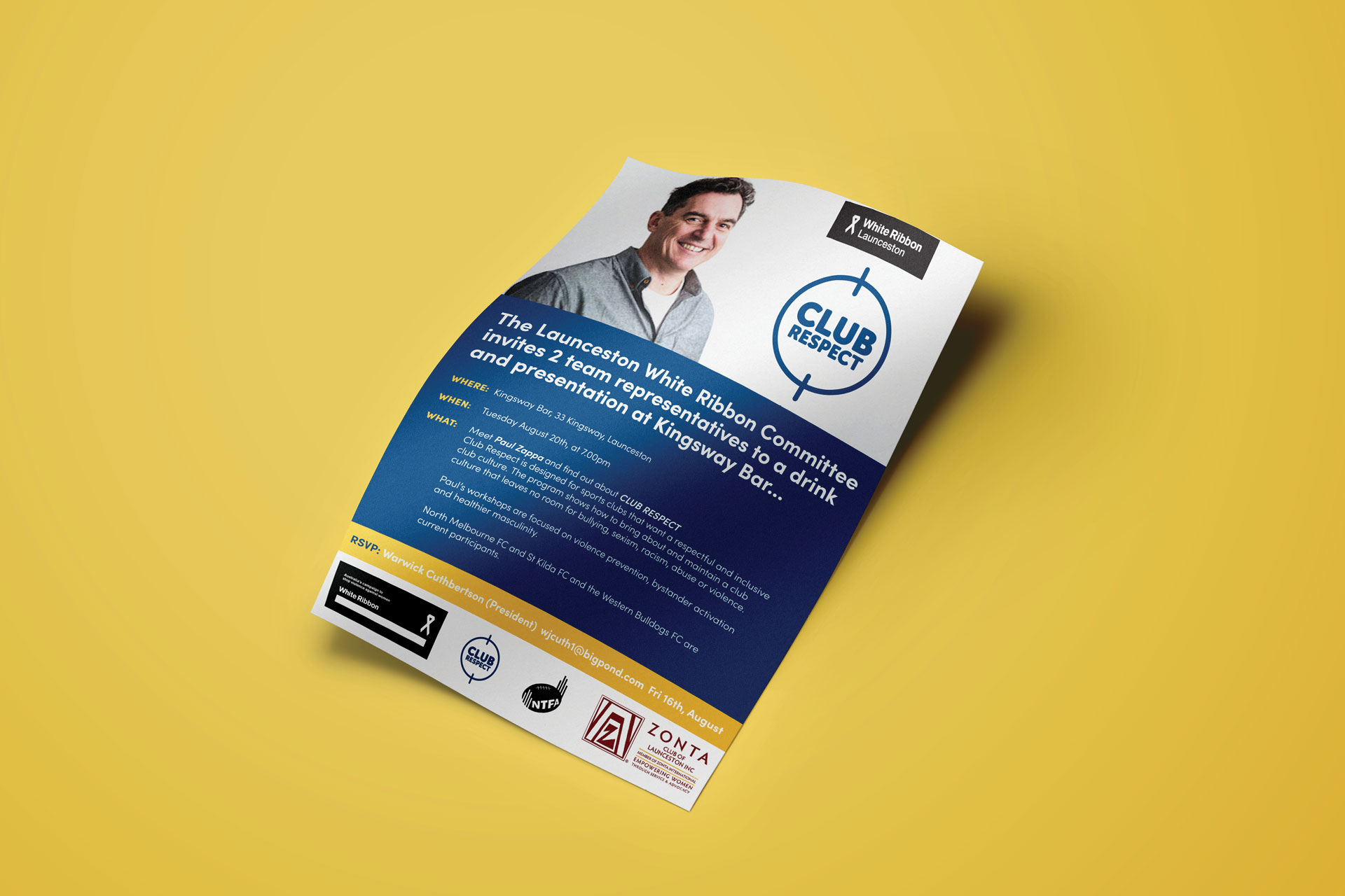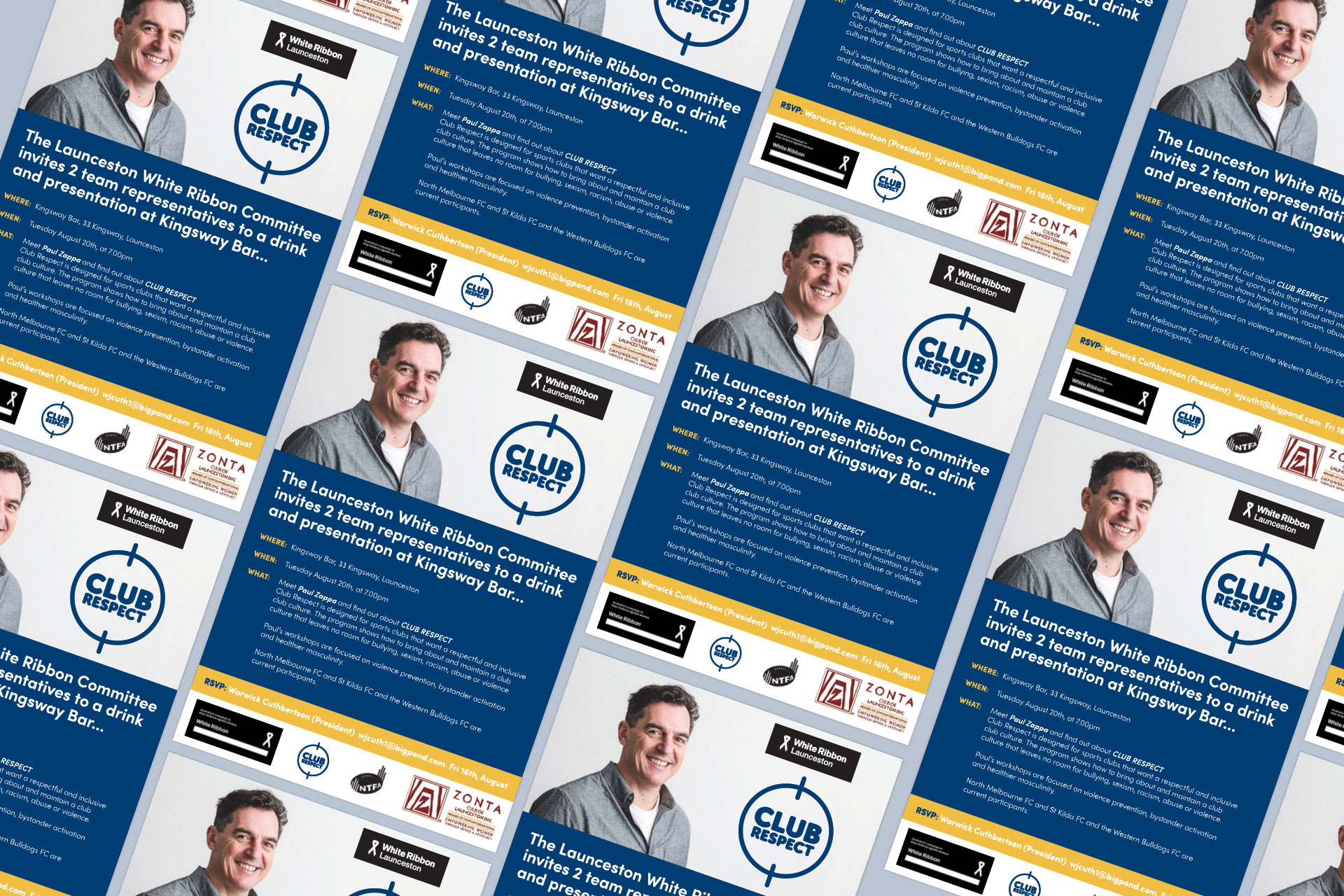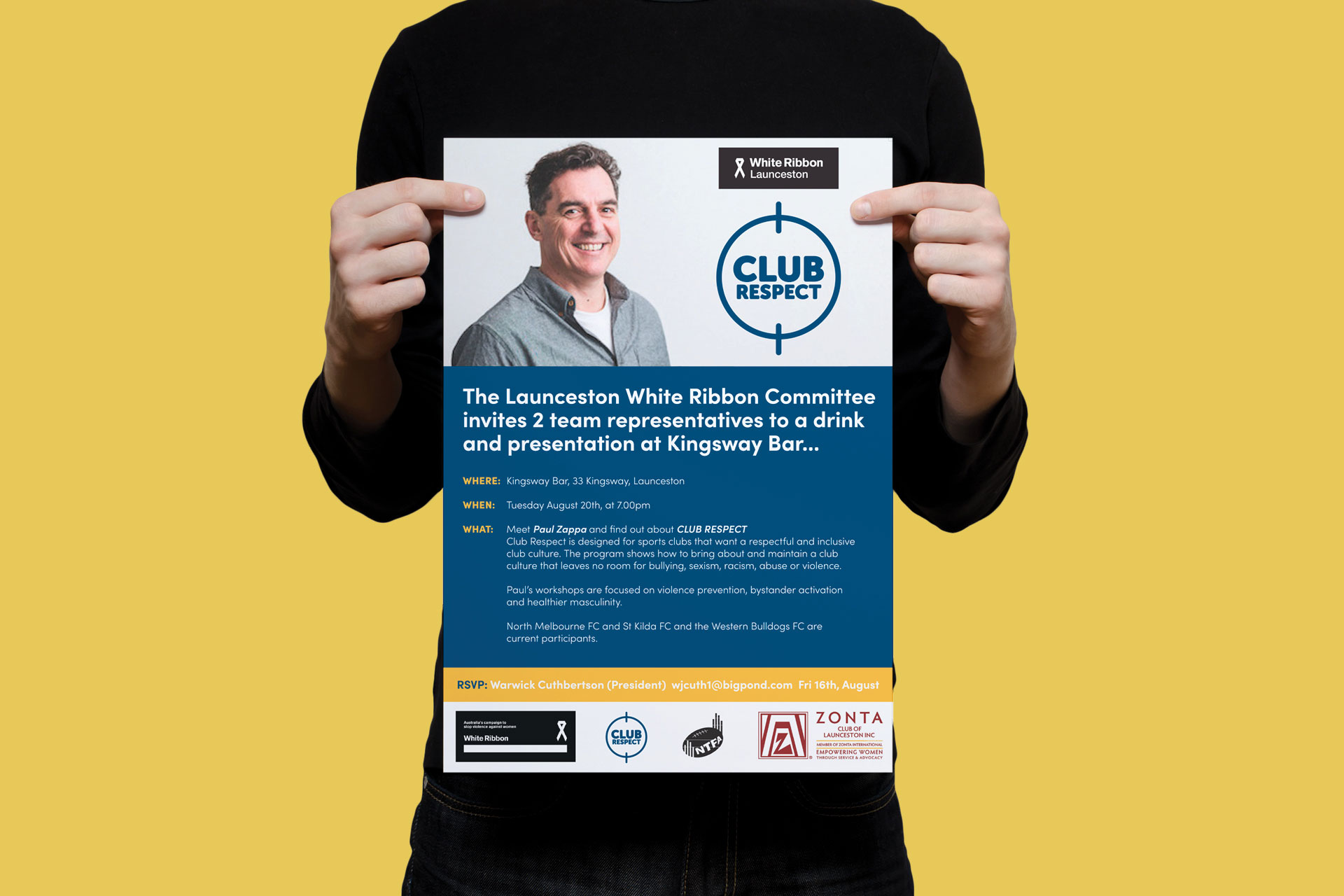 We were approached by Launceston White Ribbon and Club Respect, to help them promote a workshop run by Paul Zappa.