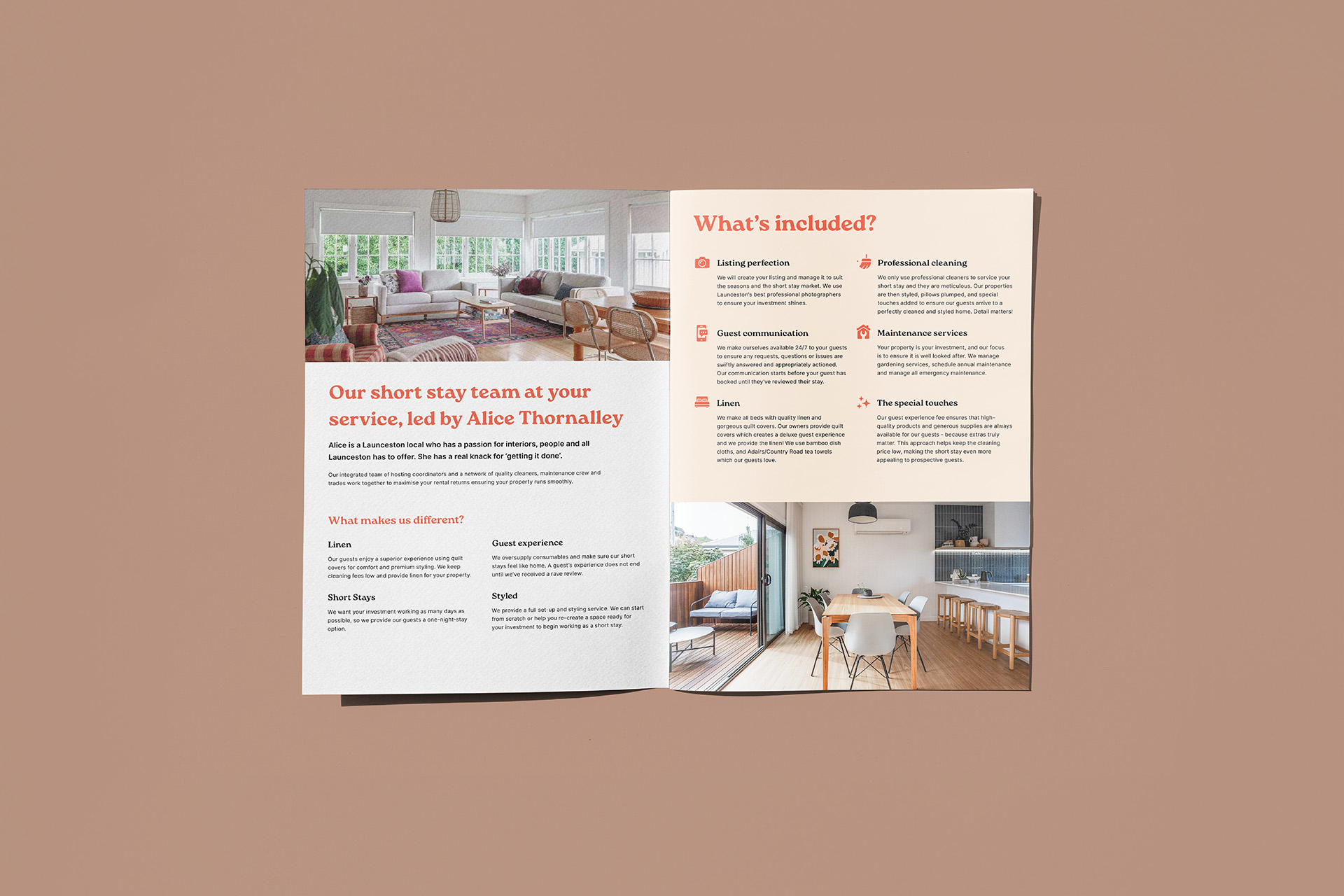 We overhauled the Launceston Short Stays branding, website, signage, internal documents and collateral - giving a professional and sleek brand system for prospective and current clients to engage with.