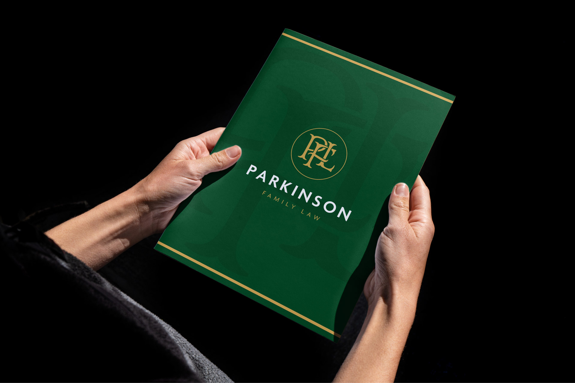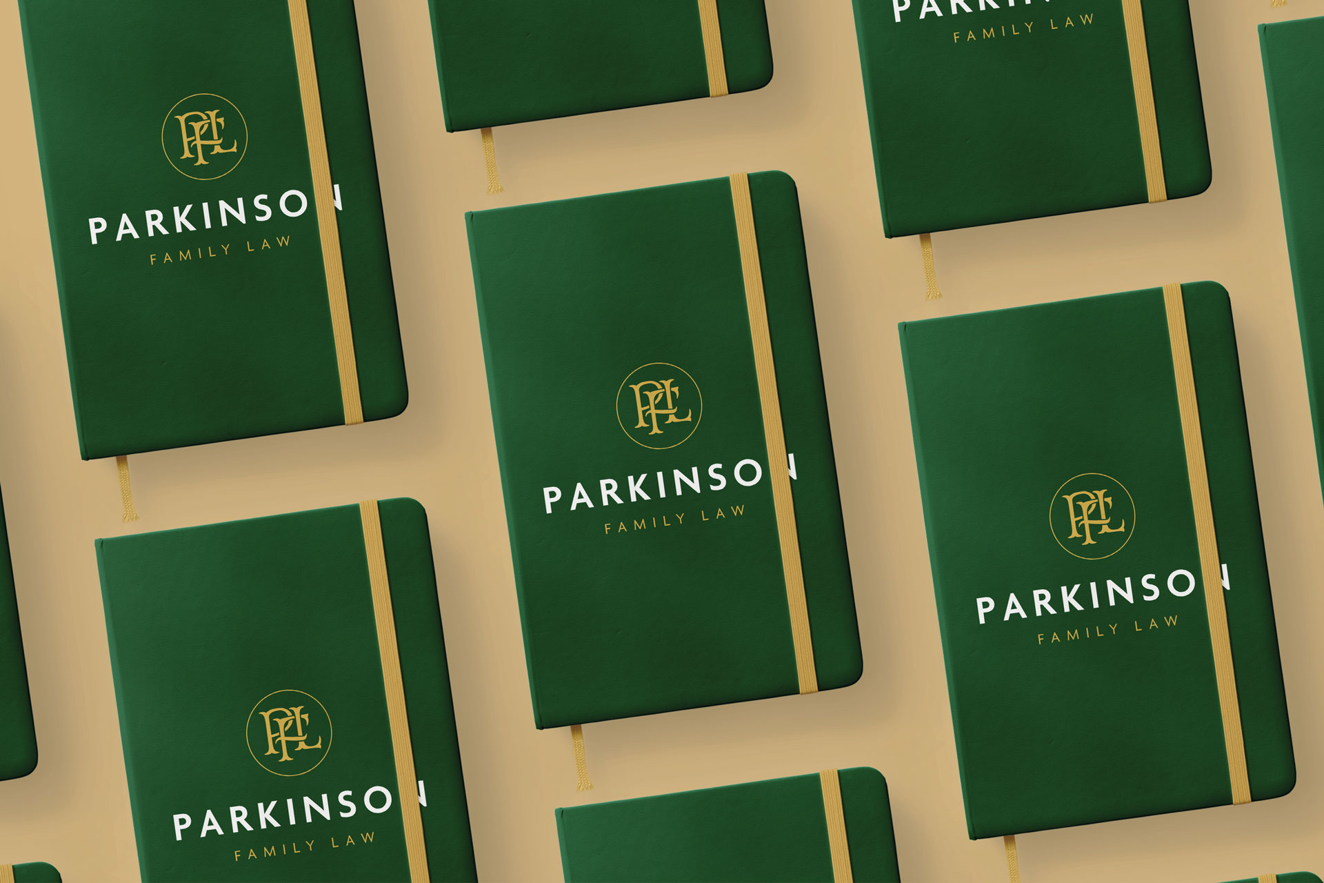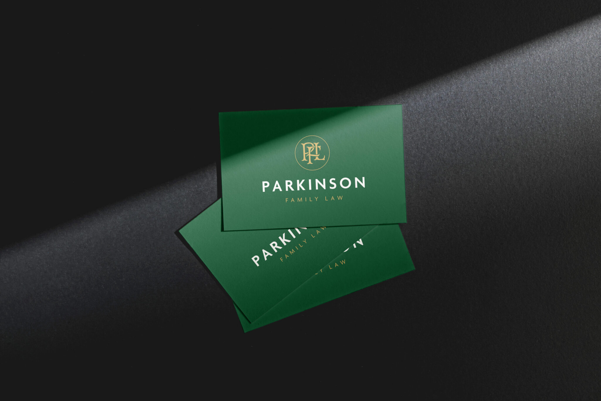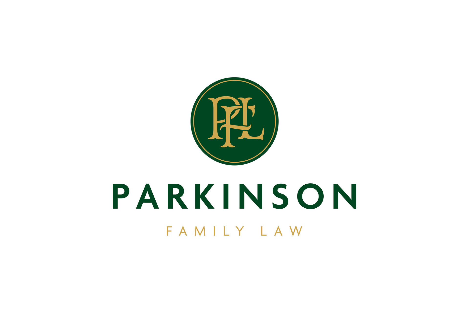 Tasked with branding his new consulting practice, Parkinson Family Law, we developed a polished yet strong identity with an elegant emerald green and gold palette and intertwined PFL monogram.